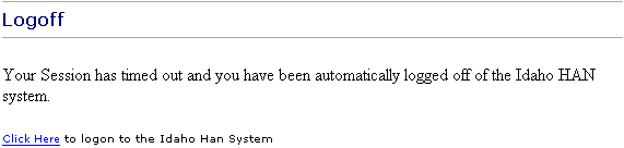 After 15 minutes of inactivity, your Idaho HAN session times out and you are automatically logged off. The automatic Logoff page appears: